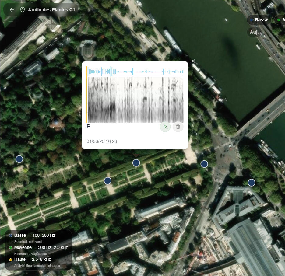Interactive platform introducing ecoacoustic listening and biodiversity through sound-based participation.